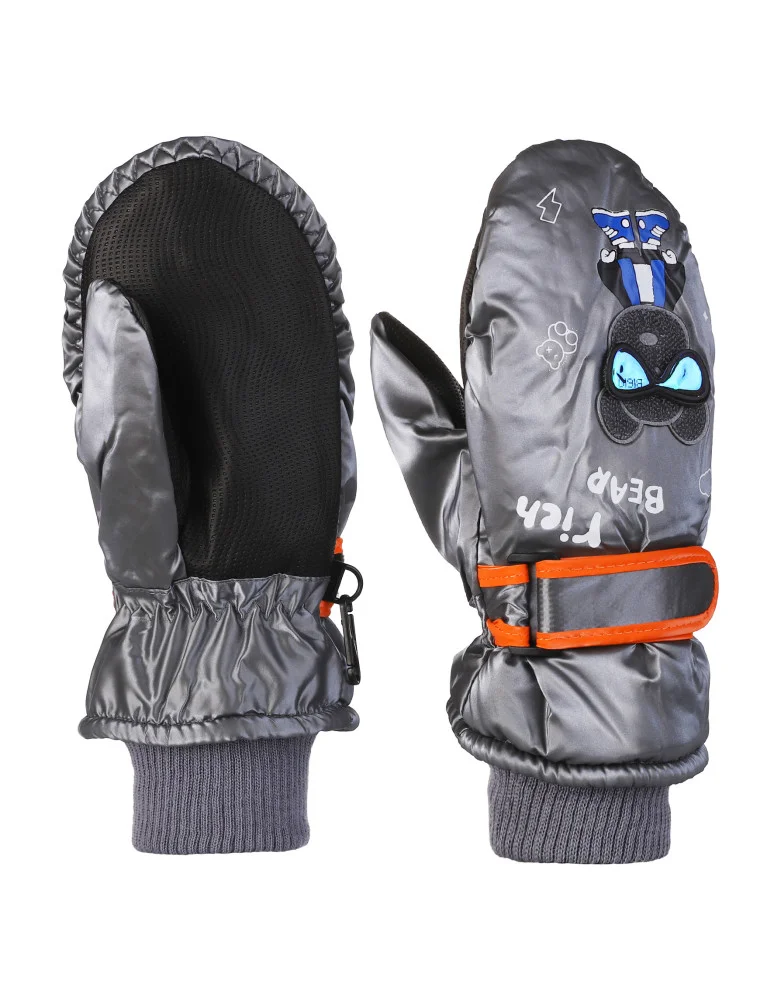 Zimowe rękawiczki dziecięce jednopalczaste z motywem misia SREBRNY