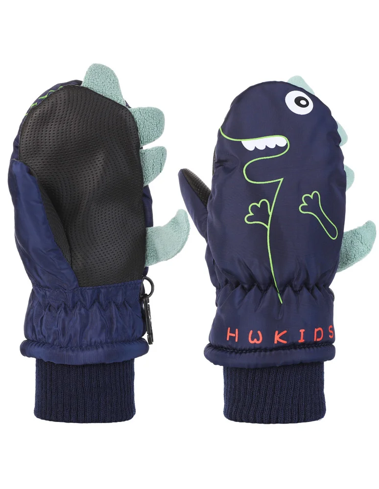 Rękawiczki zimowe dziecięce jednopalczaste w dinozaury NIEBIESKI