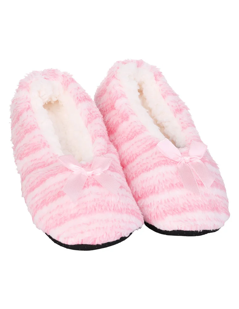 Kapcie damskie domowe bambosze z futerkiem RÓŻOWY