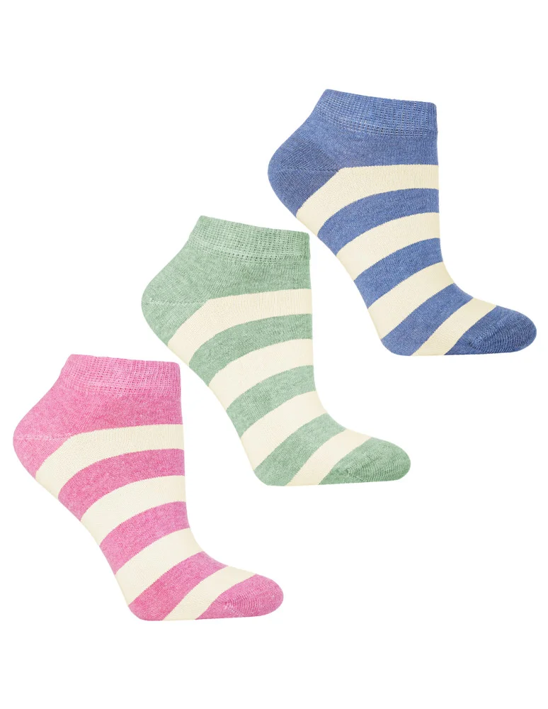 Skarpetki stopki damskie w kolorowe paski 3-pak WIELOKOLOROWY