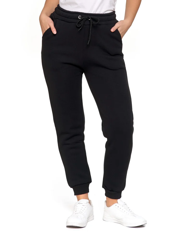 Damskie spodnie dresowe ocieplane z kieszeniami CZARNY