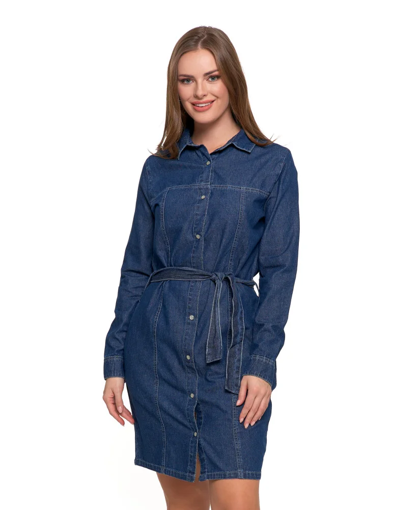 Sukienka jeansowa damska szmizjerka NIEBIESKI