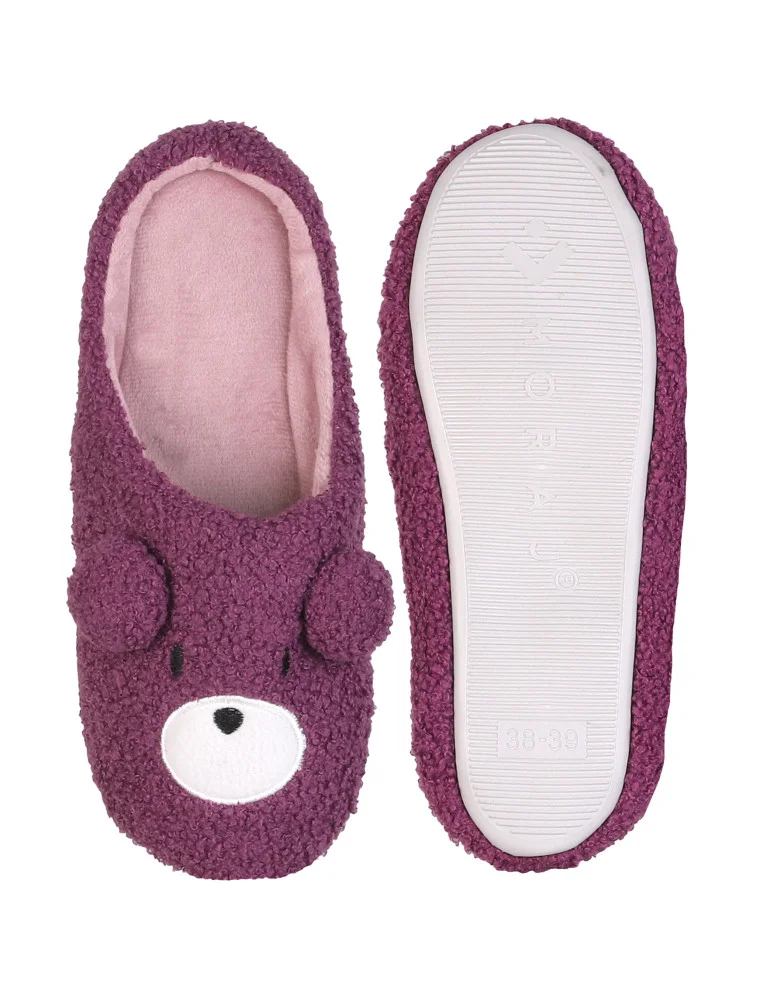 Damskie ciepłe kapcie wsuwane domowe antypoślizgowe z misiem FIOLETOWY