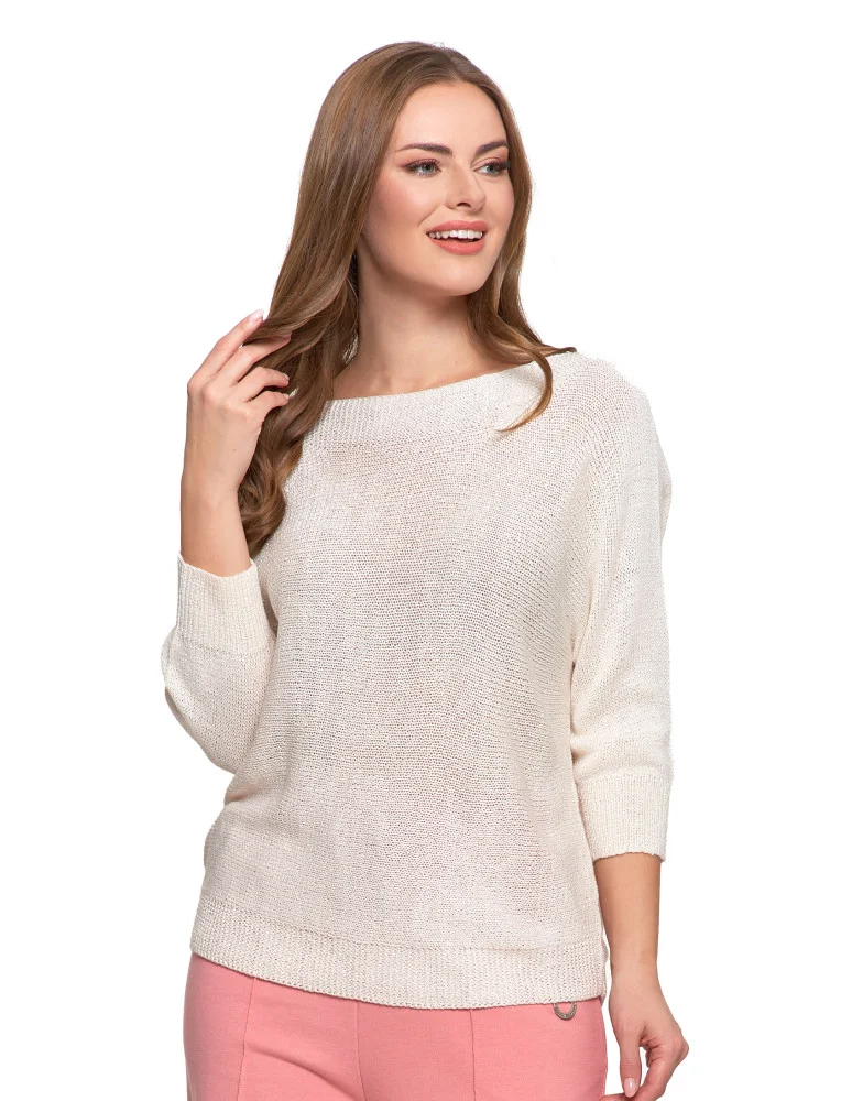 Sweter damski ażurowy z dekoltem łódkowym BIAŁY
