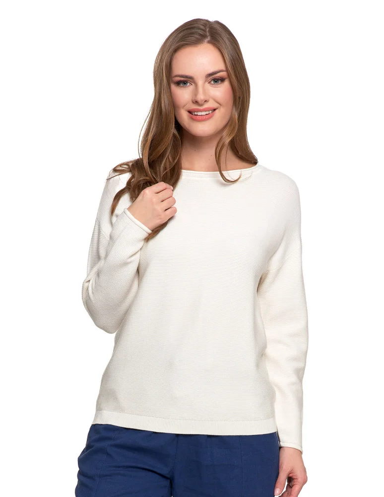 Sweter damski dzianinowy z wiskozy o luźnym kroju BIAŁY