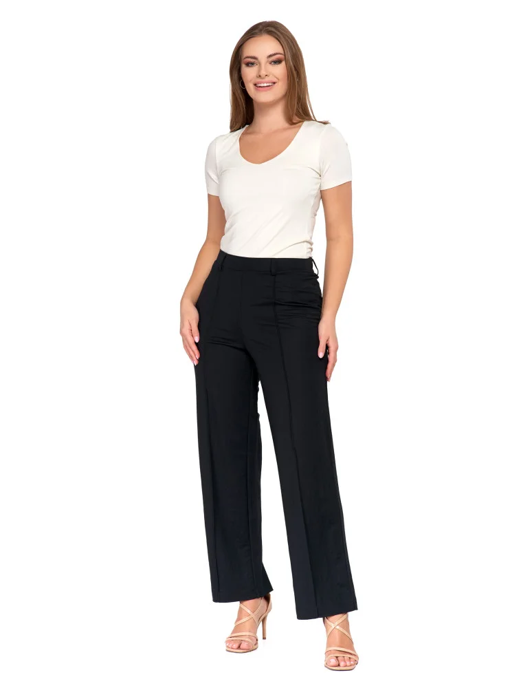 Eleganckie spodnie damskie z prostą nogawką CZARNY