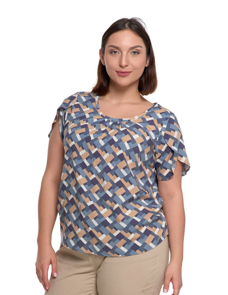 Bluzka damska z wiskozy wzorzysta NIEBIESKI