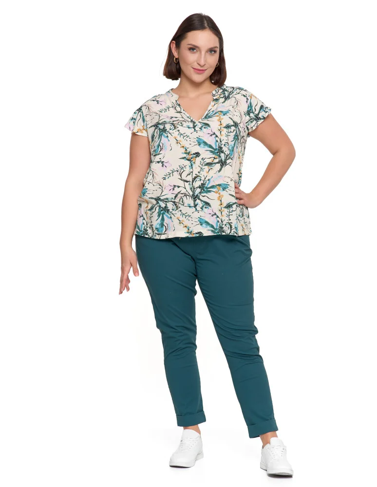 Bluzka damska z krótkim rękawem wiskozowa WIELOKOLOROWY
