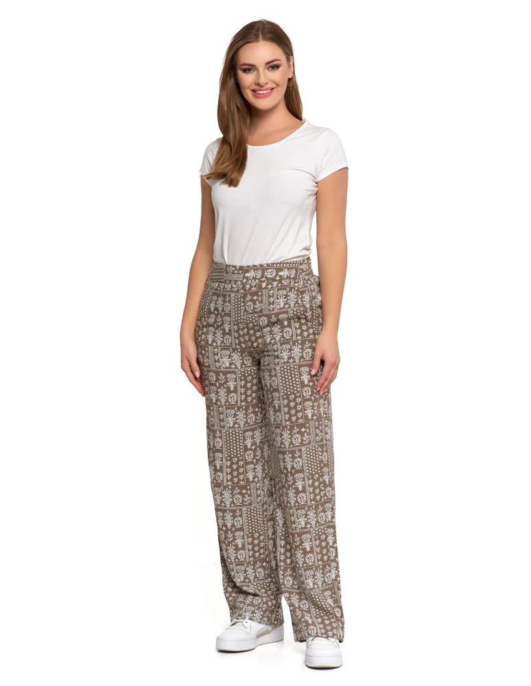 Damskie spodnie z wiskozy z szeroką nogawką BEŻOWY