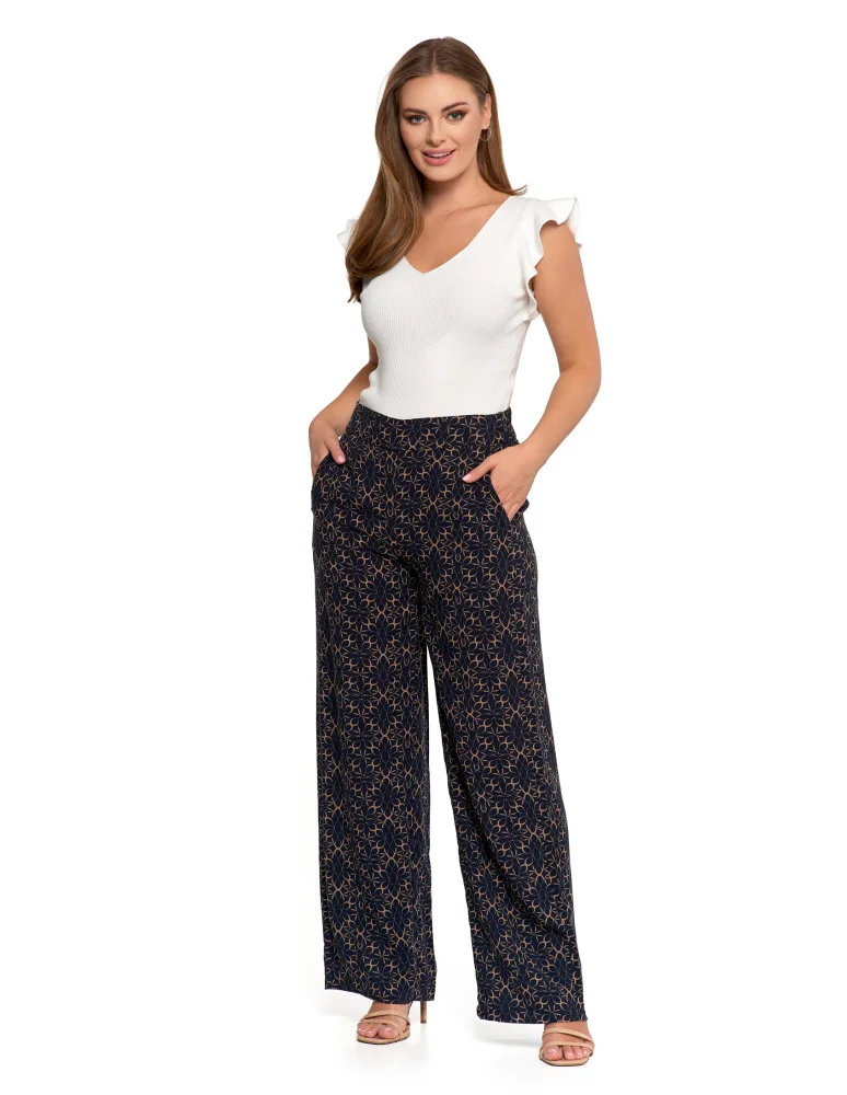 Damskie spodnie z wiskozy z szeroką nogawką GRANATOWY
