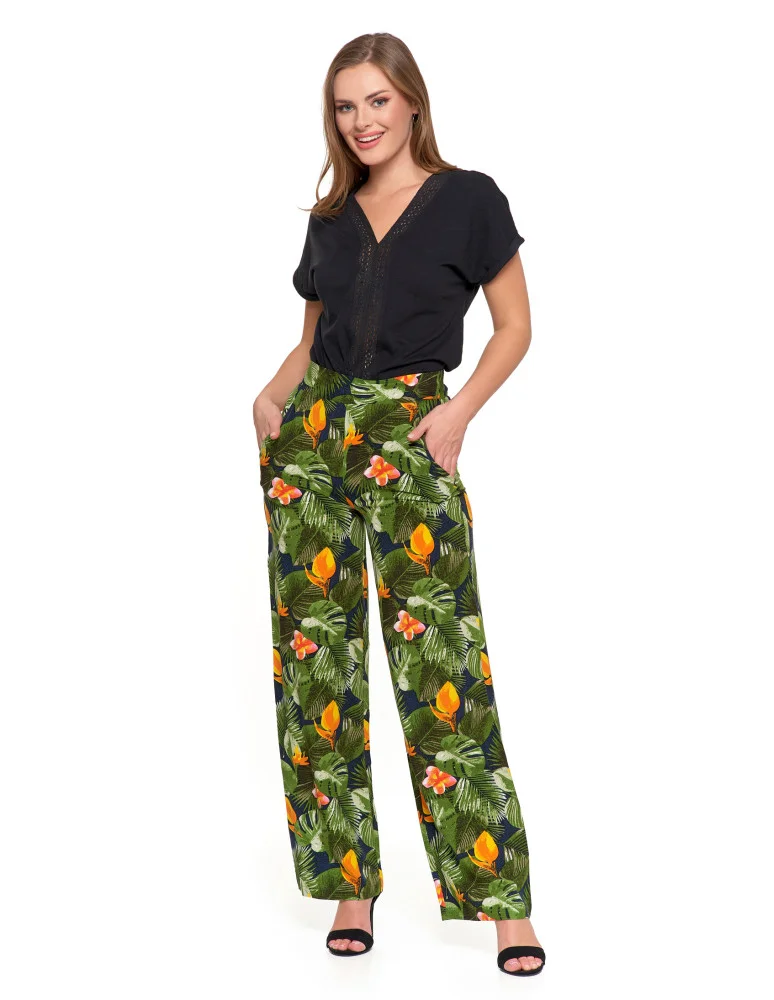 Spodnie damskie z szerokimi nogawkami ZIELONY