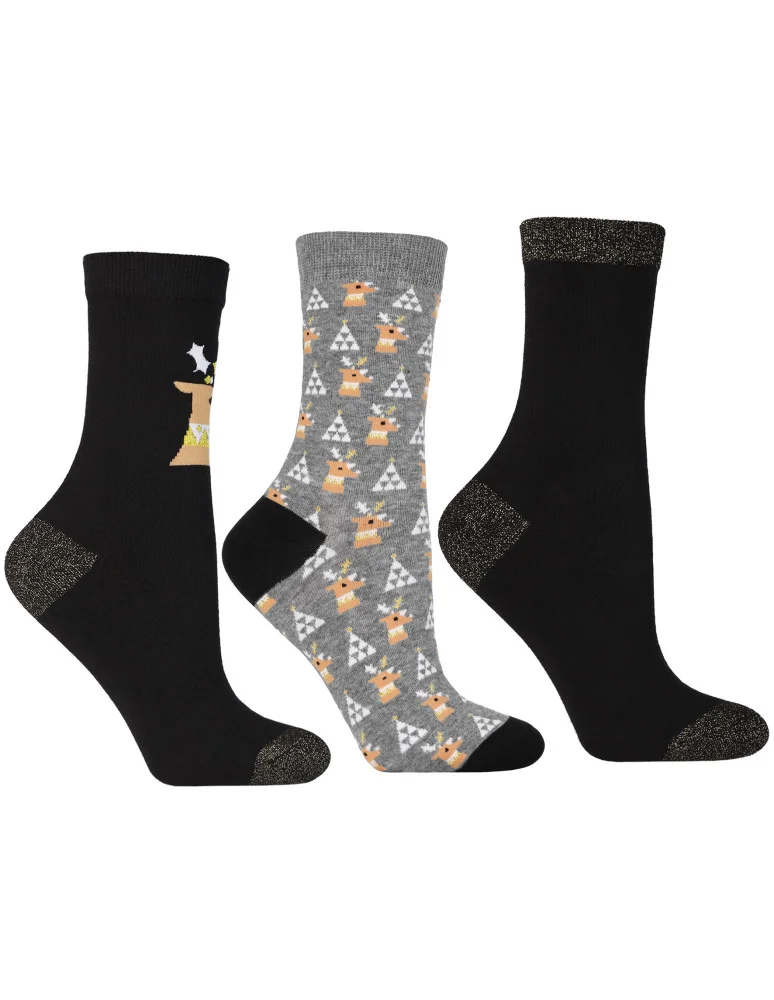 Zestaw damkich skarpetek z motywem reniferów 3-pak WIELOKOLOROWY