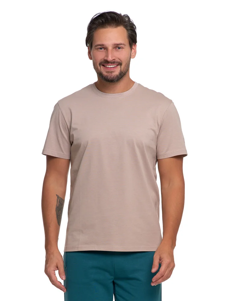 T-shirt męski bawełniany bez bocznych szwów BEŻOWY