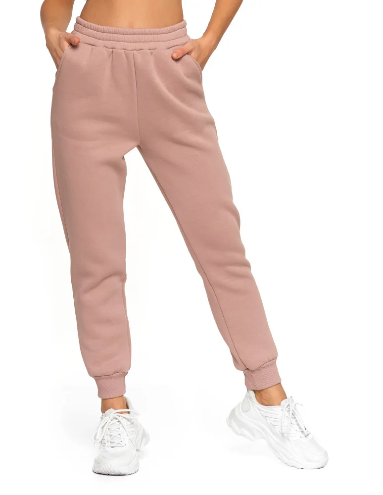 Damskie spodnie dresowe wysoki stan ocieplane z kieszeniami RÓŻOWY