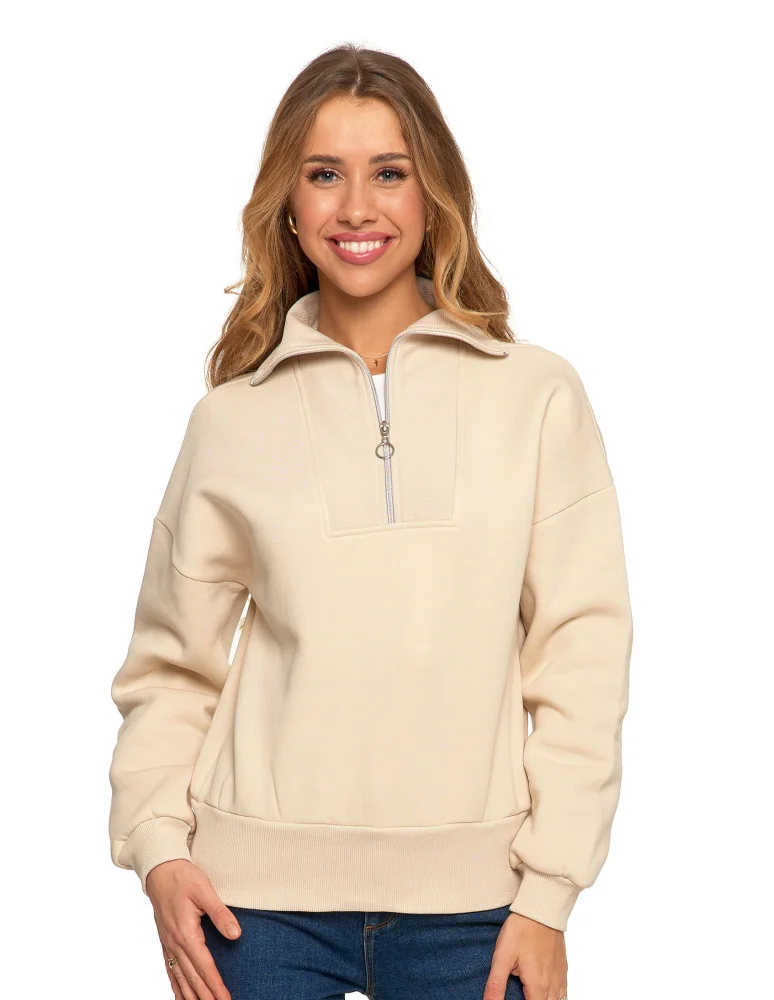 Damska bluza dresowa ze stójką i zamkiem ocieplana BEŻOWY