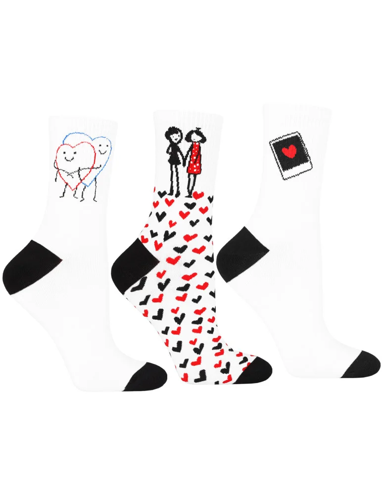Damskie skarpetki na walentynki zakochana para 3-pak WIELOKOLOROWY