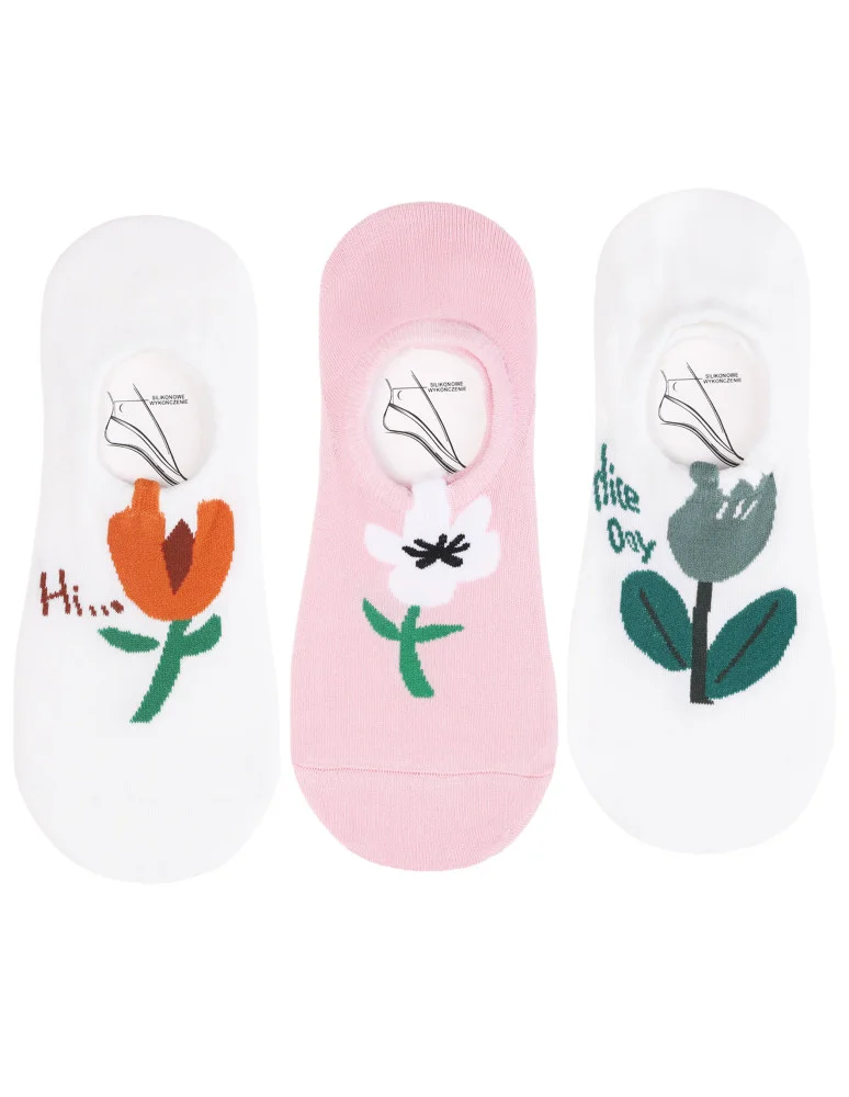 Skarpetki damskie stopki niskie z kwiatowym motywem 3-pak WIELOKOLOROWY