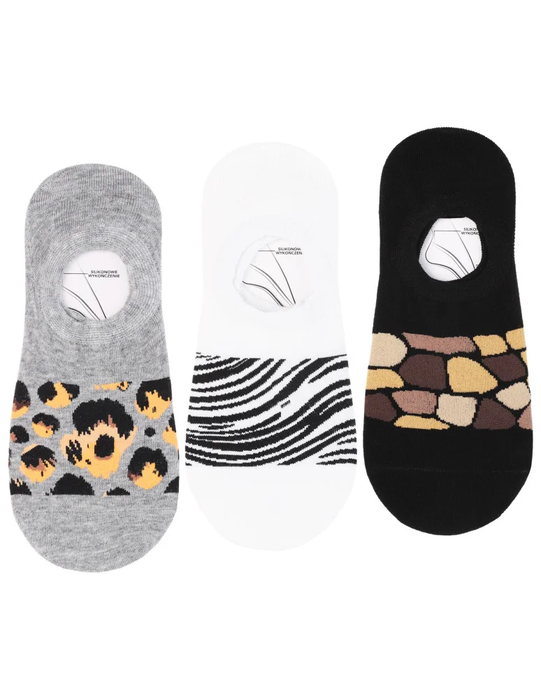 Damskie skarpetki niskie stopki w zwierzęce wzory 3-pak WIELOKOLOROWY