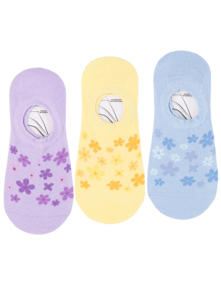 Damskie skarpetki niskie stopki w kwiaty 3-pak WIELOKOLOROWY