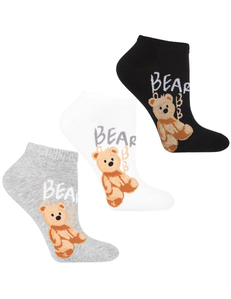 Damskie skarpetki stopki z misiem 3-pak WIELOKOLOROWY